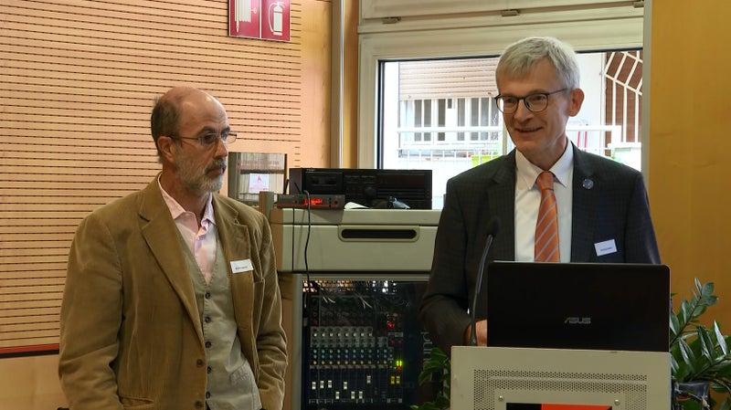 - Die Organisatoren Giulio Angelucci (Landesagentur für Umwelt und Klimaschutz) und Christian Steiner, Vorsitzender des europäischen Bodenbündnisses: "Der Boden ist eine begrenzte und nicht erneuerbare natürliche Ressource. Alle haben einen Beitrag zum Bodenschutz zu leisten, wobei den Kommunen eine besondere Bedeutung zukommt." (Foto: LPA) » [IMG 373 kB]