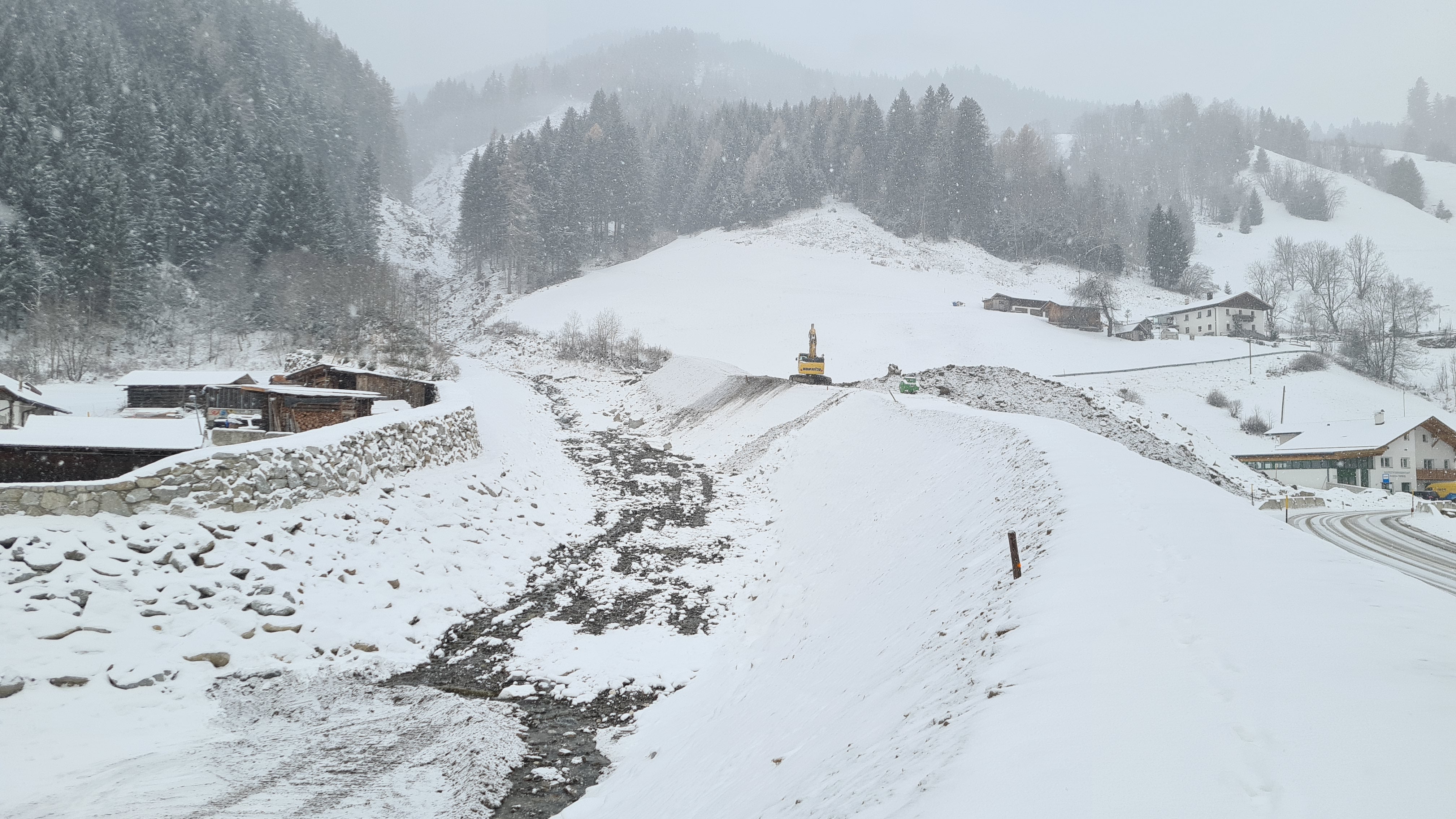 - Baustelle im Laufe der Jahreszeiten: Abschluss der Arbeiten an Dammbauten und Ufermauern am Toffringbach, winterlich am 28. November (Foto: LPA/Landesamt für Wildbach- und Lawinenverbauung Nord in der Agentur für Bevölkerungsschutz/Jan Kobald)(Foto: LPA/Landesamt für Wildbach- und Lawinenverbauung Nord in der Agentur für Bevölkerungsschutz) » [IMG 2 MB]
