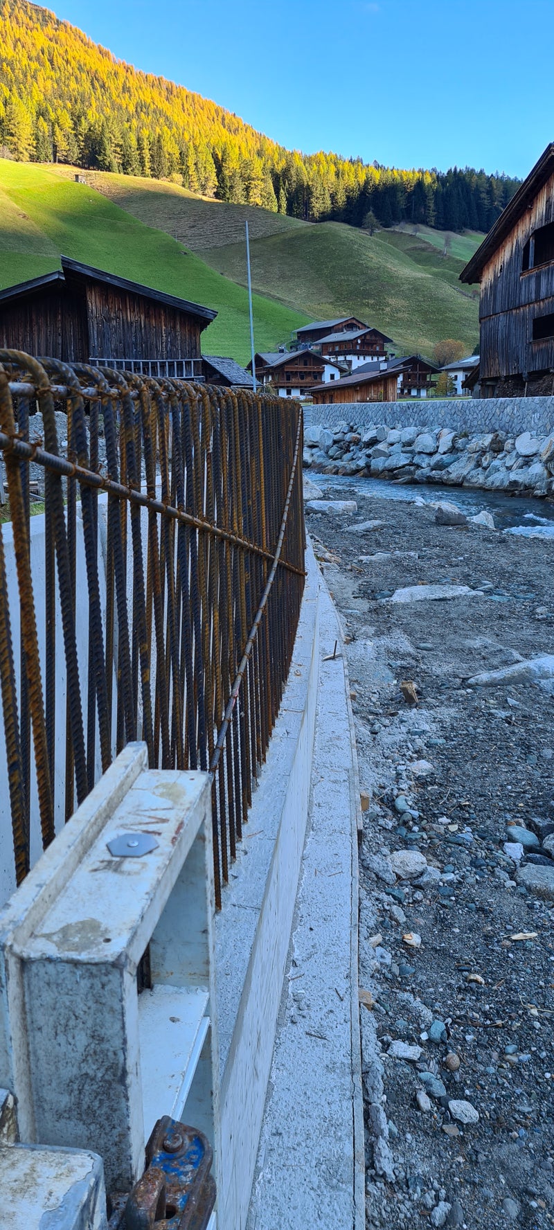 - Der Bewehrungsstahl (links gut ersichtlich) wurde eingesetzt, um die Belastbarkeit der Uferschutzmauer entlang der Ahr in Prettau zu erhöhen. (Foto: LPA/Landesamt für Wildbach- und Lawinenverbauung Ost in der Agentur für Bevölkerungsschutz) » [IMG 3 MB]