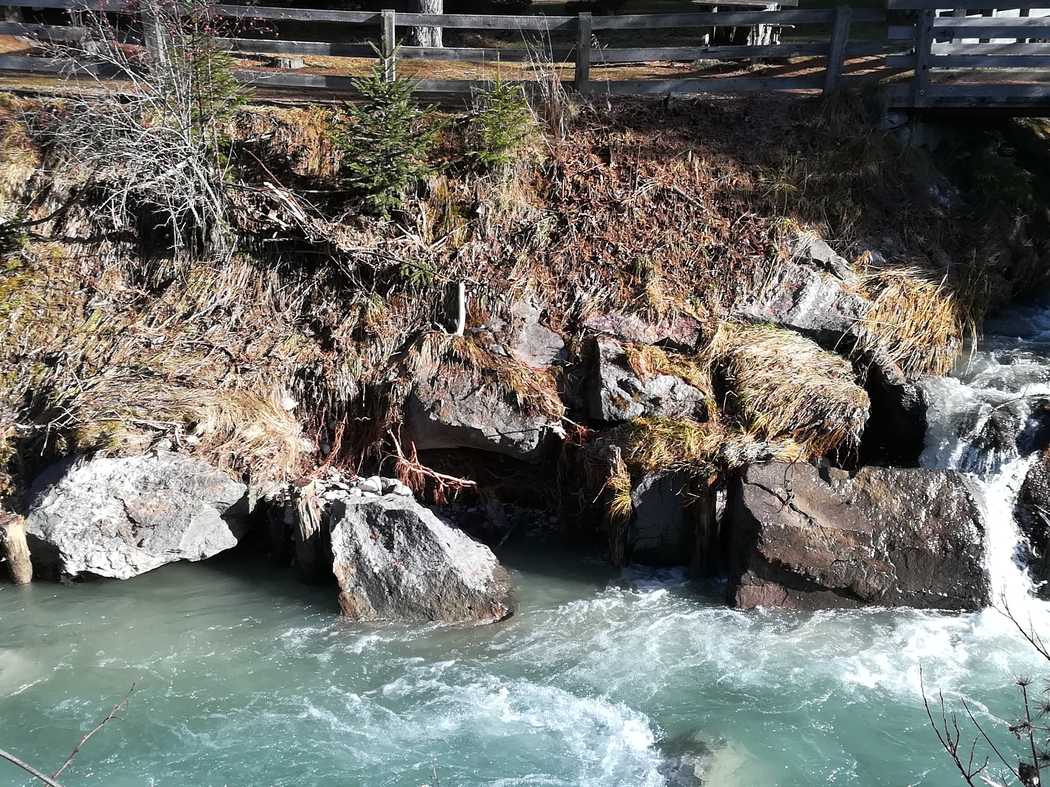 - Vorher: Unterspülte Uferpfahlwände wies der Sextnerbach vor Beginn der Arbeiten des Landesamtes für Wildbachverbauung Ost auf. (Foto: LPA/Landesamt für Wildbach- und Lawinenverbauung Ost) » [IMG 4 MB]